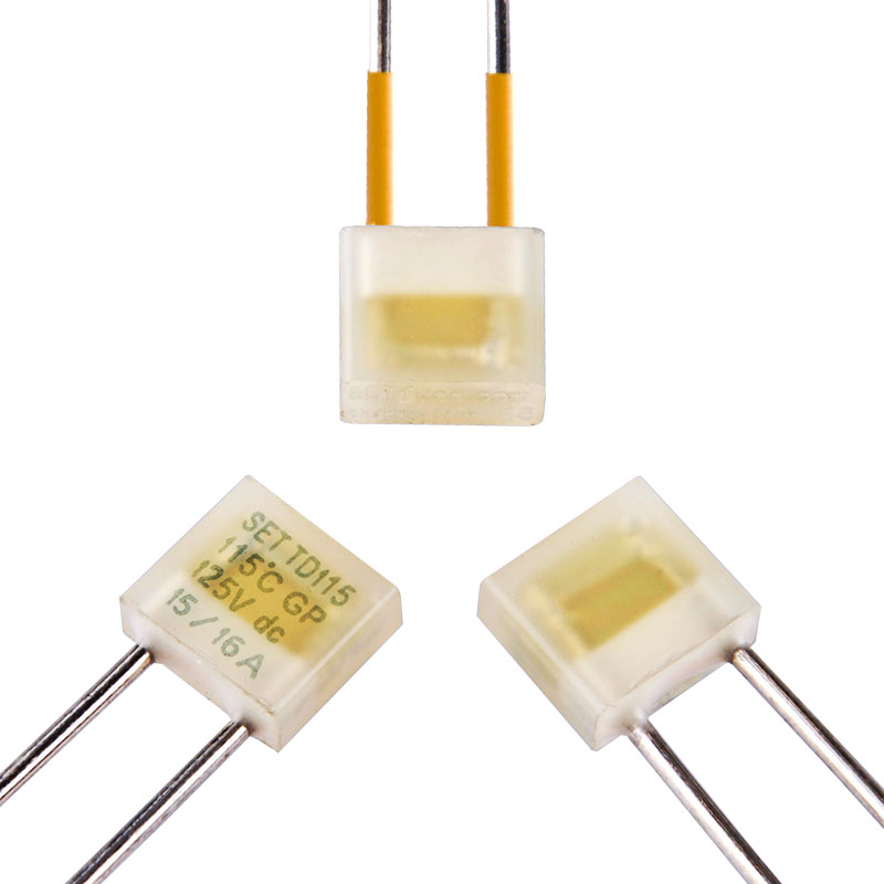 温度保险丝-有机物型 Thermal-Link (OTCO)-Organic Type 是一种以有机化合物作为感温材料且一次性动作而不可复位的温度敏感元件。在正常工作情况下,触点线与可动电极保持接触,电路处于导通状态, 当OTCO感受到异常发热并达到设定的熔断温度时,有机物型感温体熔化,可动电极在直簧的作用下与触点线脱离,从而断开电路。OTCO主要由金属外壳、弹簧、可动电极和感温体等组成。 OTCO产品广泛应用于电气设备的过温度保护。 赛尔特公司 (SETsafe | SETfuse) 的OTCO产品规格:额定动作温度从72 ℃到263 ℃;额定电流:10 A,15/16 A;安规认证包括:UL,cUL,VDE,CCC,KC,PSE,符合 RoHS 和 REACH 。