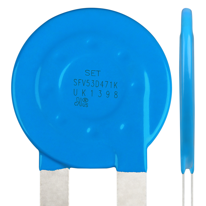 金属氧化物压敏电阻 Metal Oxide Varistor (MOV)是以氧化锌(ZnO)为主要成分的非线性电阻元件。其电阻对外加电压的变化敏感,在阈值电压以下,电阻非常高,流过的电流极小,相当于关闭的阀门,当电压超过阀值时,电阻急剧下降,流过的电流激增,相当于阀门打开,利用该特性,可以抑制电路中经常出现的异常过电压,保护电路免受过电压的损害。 金属氧化物压敏电阻 Metal Oxide Varistor(MOV)广泛应用于光伏、通信、防雷器、电源和插座等领域,限制电路中的瞬态过电压和吸收浪涌能量。 赛尔特(SETsafe | SETfuse)公司的金属氧化物压敏电阻 Metal Oxide Varistor(MOV)具有最大峰值电流:(0.75~70)kA;最大连续工作电压:(14~750)VAC;安规认证UL、cUL、TUV、CQC;符合RoHS、REACH要求;可以根据客户要求定制。 与标准型压敏电阻相比,高浪涌冲击型压敏电阻采用更高性能的材料,同尺寸产品通流能力提升30%左右,具有良好的性能和长期稳定的可靠性,可适用更高浪涌防护或者小型化的设计需求,节省空间。