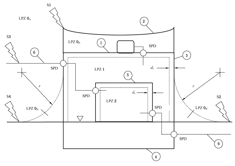 4. 连接至电涌保护装置 (SPD)的输出电缆应尽可能短,避免形成回路。