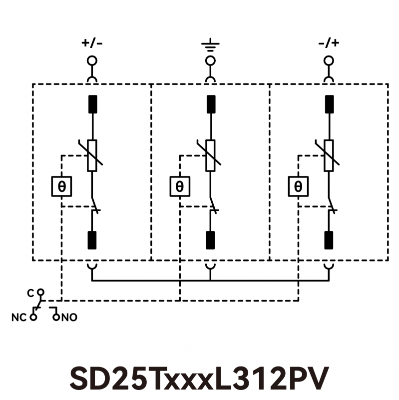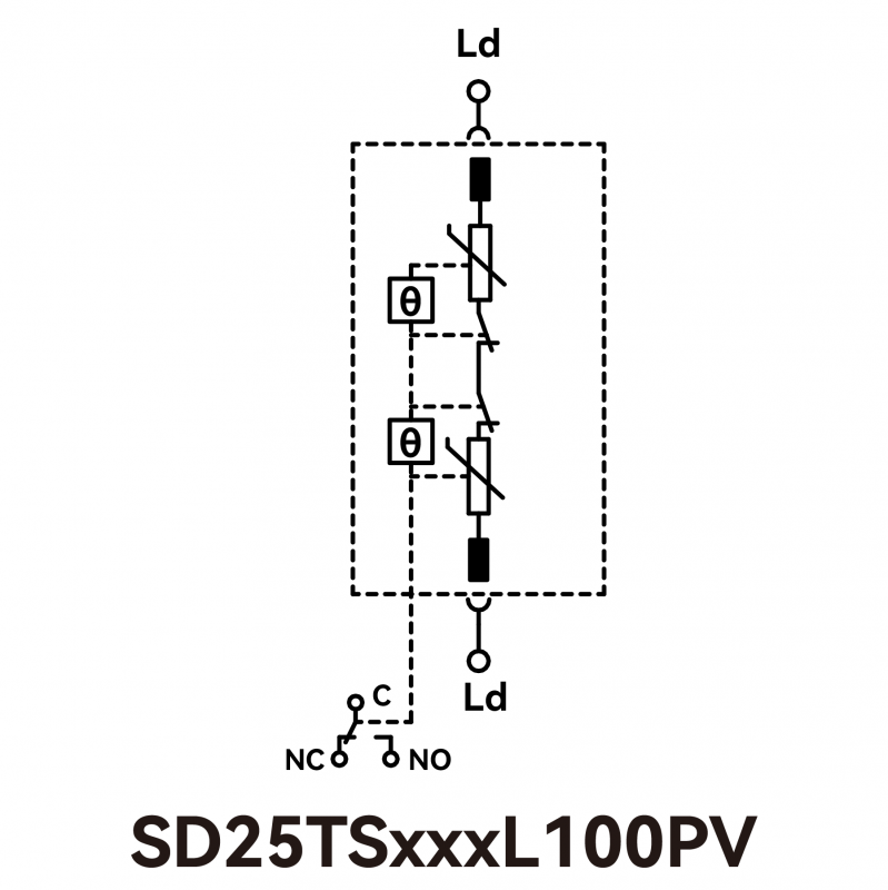 热保护型压敏电阻(TFMOV)是压敏电阻与热保护脱离部件的组合。压敏电阻存在老化特性,热保护型压敏电阻能够在压敏电阻(MOV)劣化或失效时,通过热保护部件的动作将压敏电阻从主回路中脱离。常用于光伏逆变器,通信设备,机房电源等对可靠性和耐候性要求高的场所。